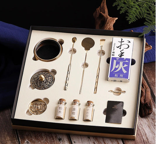 Hochwertiges Kodo-Räucherstäbchenset aus Messing (13-teilige Geschenkbox) + Räucherpulver nach altem Rezept (kostenloses Geschenk)