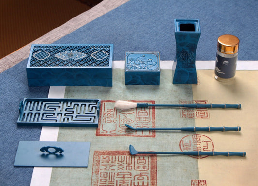 Luxuriöses Räucherstäbchenset „Auspicious Cloud“ aus blauem Messing (9-teiliges Geschenkset aus Bambus)
