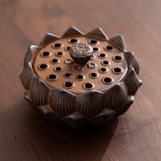 Beleuchteter Räuchergefäß mit glasiertem Lotus